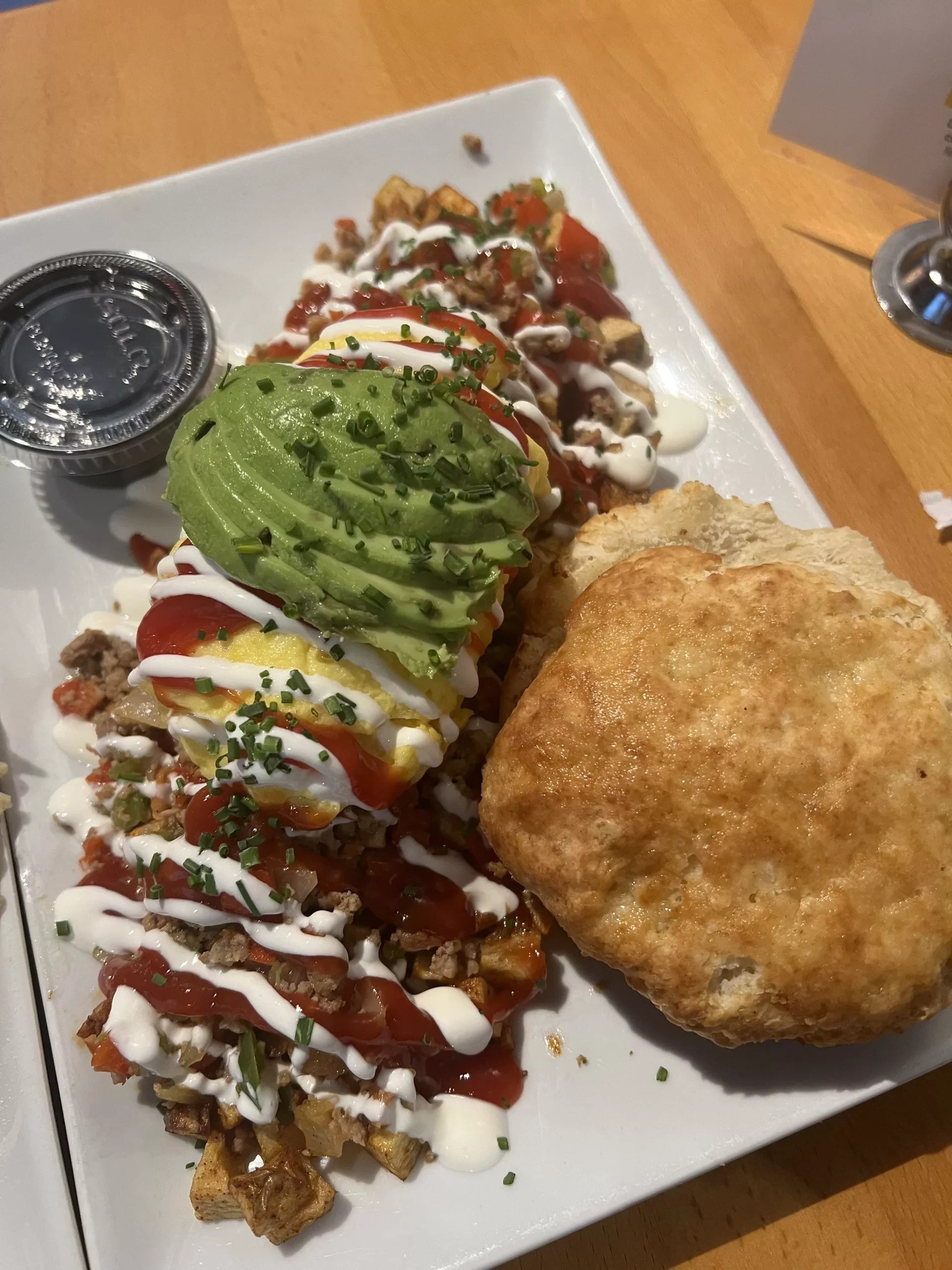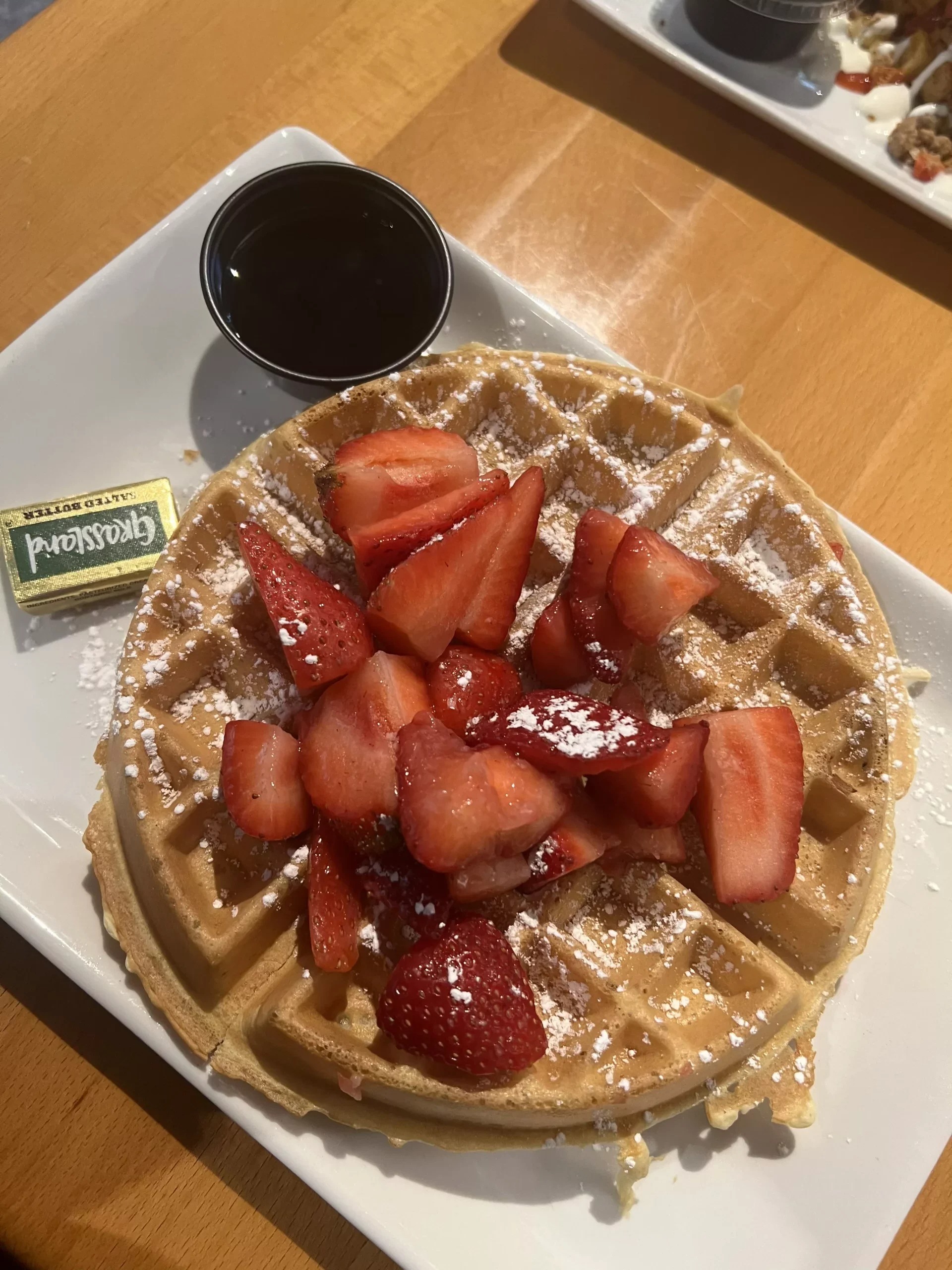 Must-trys: the Housemade Sausage Hash and Malted Belgian Waffle with Strawberries